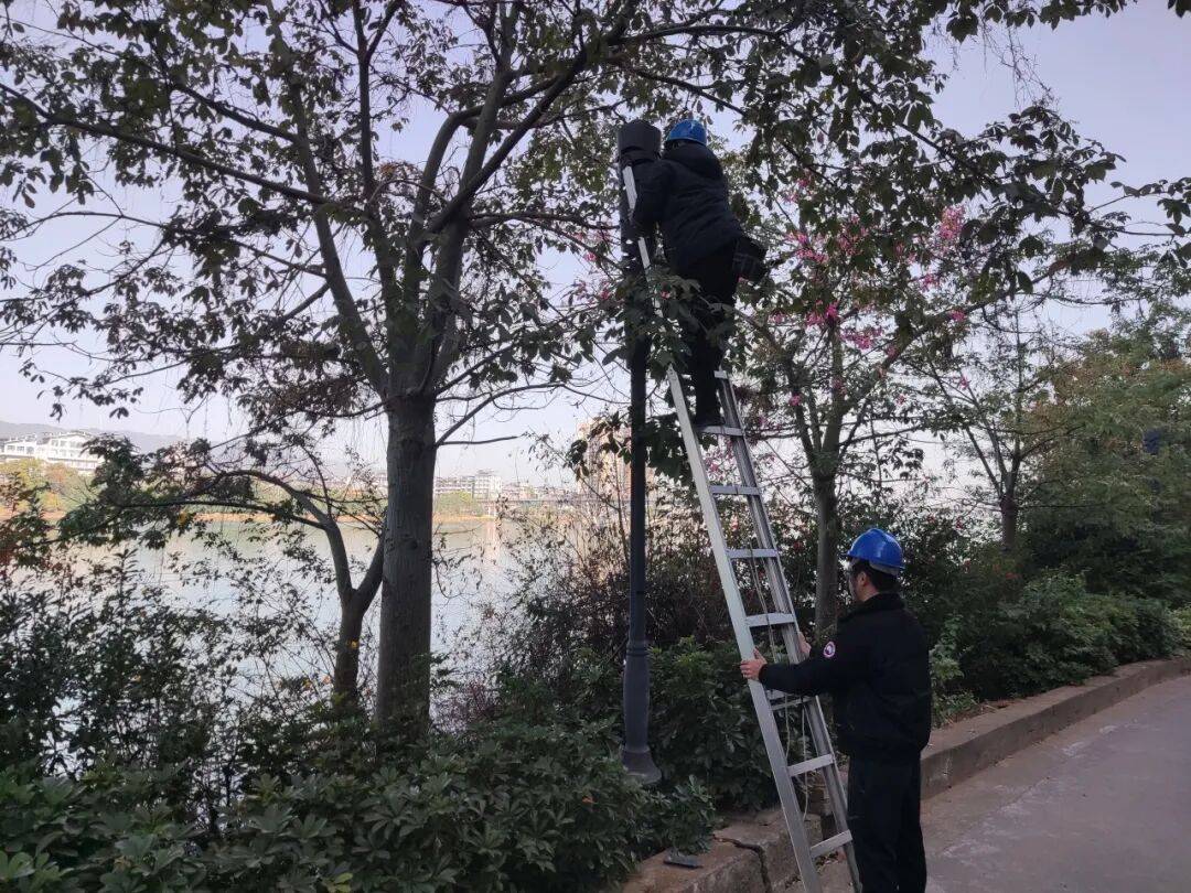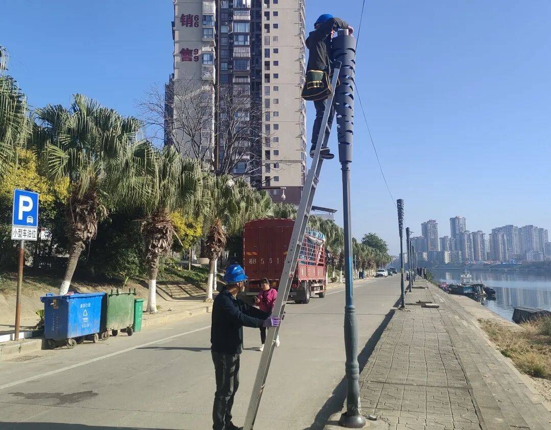 融安县路灯管理站针对“一江两岸”河堤沿线庭院灯存在的问题,提前制定了检修计划,安排路灯维修工作人员利用近期晴好天气,沿河堤分段展开拉网式巡查与作业。在工作中,维修工作人员对每一盏问题灯具进行细致检查,精准排除故障,对无法修复的灯具,进行拆旧换新,确保“一江两岸”河堤沿线路灯全面复明,照明效果整体提升。