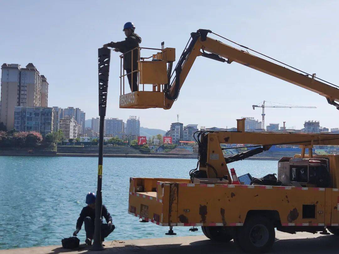 近日,融安县综合行政执法局组织县路灯管理站聚焦群众夜间出行需求,对县城“一江两岸”河堤沿线照明设施开展了集中维修更换工作,累计更换故障灯具共80盏,让沉寂的河岸夜景重新焕发光彩,为市民夜间休闲出行筑牢了安全防线。