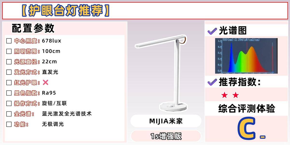 实力口碑护眼台灯品牌第九名:米家1S增强版