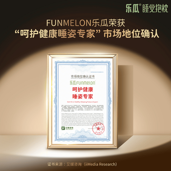 近日,FUNMELON乐瓜荣获全球新经济产业第三方数据机构iiMedia Research(艾媒咨询)授予的 “呵护健康睡姿专家” 市场地位确认,标志着其在睡眠健康领域的专业影响力获得权威认可。