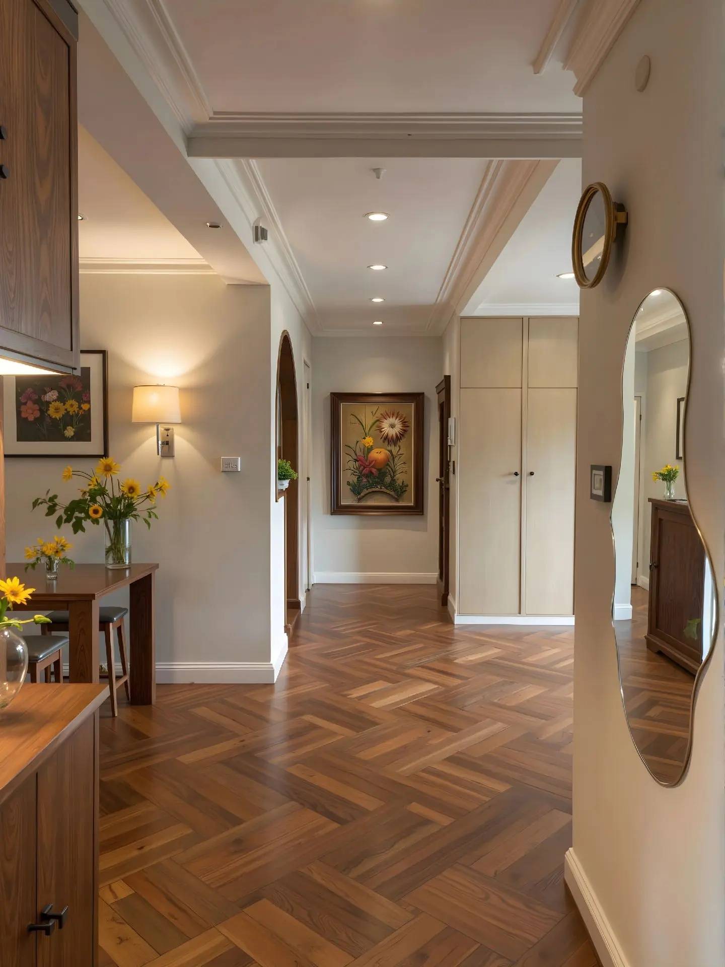 主要材料:环保乳胶漆、实木地板、大理石瓷砖