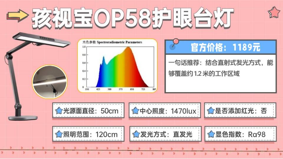 孩视宝OP36护眼台灯在材质和外观上保持了统一风格,铝合金与ABS结合,不仅结实耐用,也让整盏灯更稳固。光源部分配备约50厘米的条形灯头,采用直射式设计,照明范围可覆盖约1.2米的桌面,无论放置多本书或多人使用都足够。