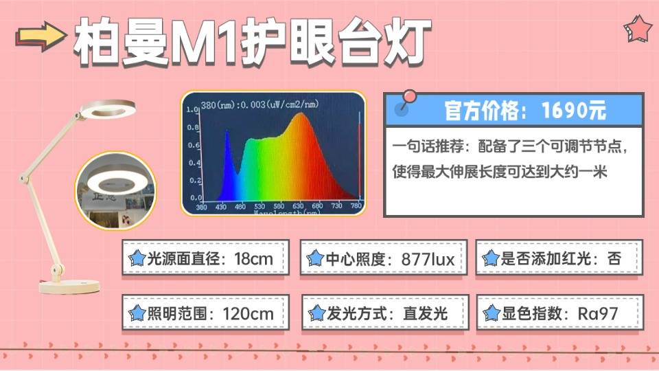 护眼灯最好的牌子是哪个?柏曼M1护眼台灯设计简约,外观大方,颜色柔和,底座稳重,支持360°旋转。灯臂上有三个调节旋钮,灯头为环形,可以实现多角度照明。