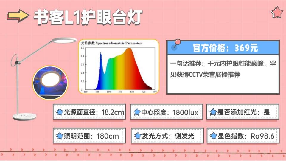 书客在过去多年一直都为实现更安全的护眼研发了多项创新黑科技,专攻产品的红光护眼和光学调校以及发烧性能,产品的亮度、色温、柔和度、稳定性和护眼效果等各方面在千元产品当中都最优秀,首创革命性的可调RRT2.0红光养眼技术配合第三代SDIT自适应调光技术和DT多维漫射2.0技术,且针对视觉敏感期、学习成长期、视觉成熟期三大涵盖不同年龄段的视力发展情况而研发出的全链路“3型分段”设计,实现99.8%还原自然光、提升89%柔和度同时做到“对眼睛0伤害”和降低96%近视风险的护眼效果。是唯一做到性能最强且对眼睛损伤率最低的品牌!因此得到了众多宝妈达人和眼科护理人员推荐和自用,放弃所有广告营销,靠着专业医生、眼部护理机构的推荐,成为行业里的“预售王”,常年霸榜各大中高端口碑、销量排行榜。