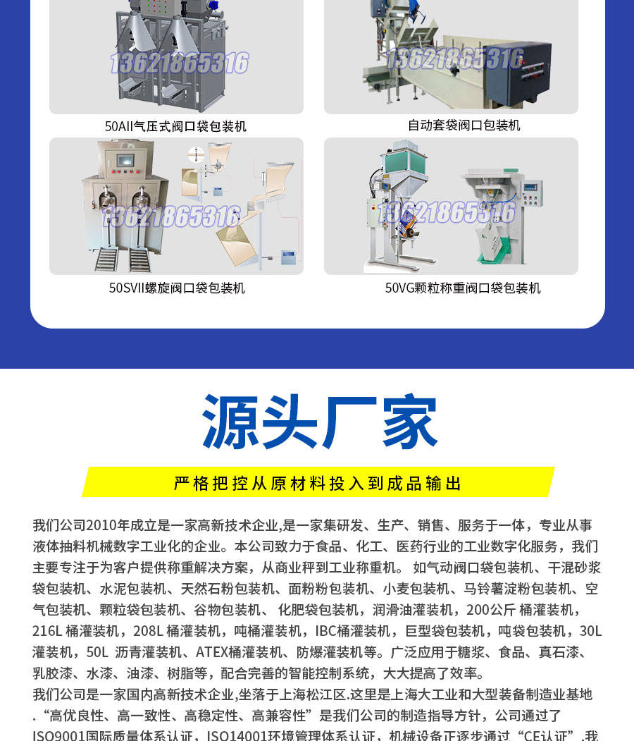 本公司销售多种粉体包装机、橡胶颗粒包装机、码垛包装机、活塞式包装机、立式螺杆包装机、等,具有性能优越、操作方便等特点。我们深入了解市场需求,按照客户需求定制生产,为客户提供、满意的产品和。