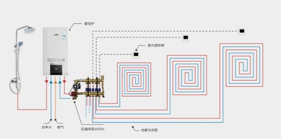负责将热水均匀分配到各个回路,再收集冷水,将冷水送回冷媒-水热交换器,让采暖系统继续加热。