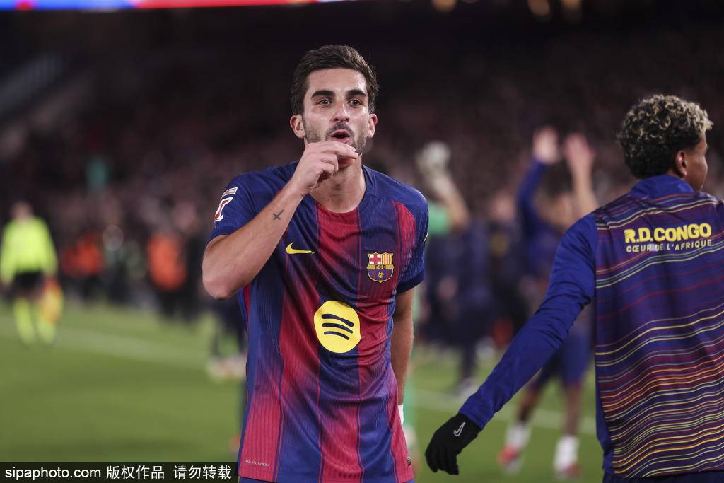费尔明·洛佩斯,这位巴萨青训营出身的年轻球员,身穿一套亮眼的迷彩绿色运动服和同色帽子出现在观众席。当费兰-托雷斯打入锁定胜局的第三个进球时,费尔明无法抑制自己的激动,冲到角旗区与队友们一起庆祝。这一幕不仅展示了年轻球员的热情,更展现了更衣室内的团结。杰拉德·马丁在一旁笑得前仰后合,并摘下了费尔明的帽子,这无疑是比赛中的一大亮点。