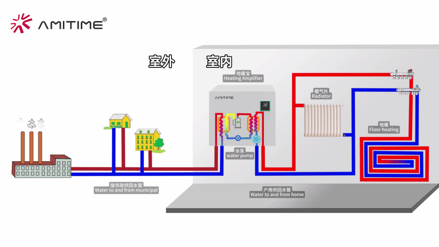 地暖宝的创新在于跳出传统供暖框架,通过热泵技术将集中供暖的“余热”转化为稳定高效的家庭热源。