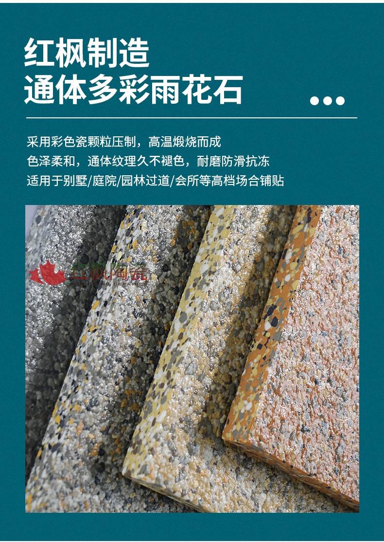 在室外鹅卵石瓷砖的研发与生产方面,沙河市红枫陶瓷有限公司同样展现出了强大的创新实力与技术优势。公司针对户外环境的特点与需求,研发出具有防滑、耐磨、耐候等特性的室外鹅卵石瓷砖。这些瓷砖不仅外观美观大方,而且实用性强,能够经受住各种恶劣天气的考验,保持长久的使用寿命。同时,公司还注重产品的环保性能,所有室外鹅卵石瓷砖均采用环保材料制成,符合**相关环保标准,为城市景观的绿色建设贡献了一份力量。据统计,自室外鹅卵石瓷砖推出以来,已成功应用于多个大型户外项目之中,赢得了客户的一致好评与高度认可。