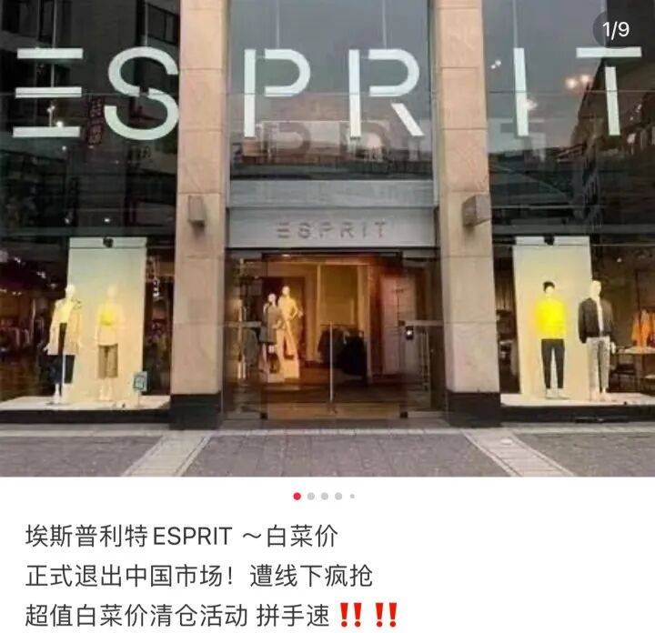 网上资料显示,2020年5月,Esprit母公司思捷环球宣布终止内地业务、关闭亚洲56家门店,彼时这个曾风靡70后—90后的时尚品牌,已因设计老化、库存积压、数字化滞后陷入困局。全球市场的处境更严峻,2024年母公司预计亏损11.72亿港元,欧洲多国子公司申请破产,业务模式转向“轻资产”的许可证授权。