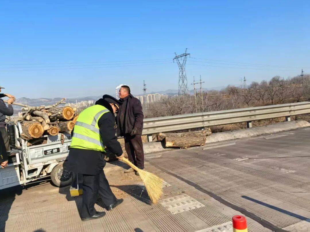 老大爷望着正常的车辆和整齐的木材,以及收费人员汗湿的额头与沾尘的双手,眼眶泛红、紧握其手哽咽致谢。此次暖心援手,既彰显了四班收费人员见义勇为、乐于助人的职业风貌,更以实际行动诠释了“为民服务”的初心,让群众在寒冬中感受到温暖与担当。