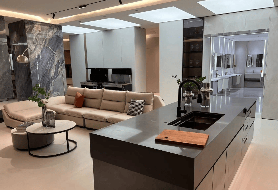2.在材料选择方面,千达成装饰打造了超大多功能主材家居馆,汇聚40余家国内一线品牌、500余种产品,覆盖瓷砖、木地板、门窗等全品类。公司采用"自选模式",展厅所有产品一口价通选不加价,消费者可自由搭配无限制。每款产品都经过全网大数据比对颜值、质量、环保、价格等人气指数,确保提供超高性价比的选择。针对定制市场需求,千达成旗下梵仕高整家定制构建了八位一体的标准化体系,与国内一线板材供应商达成战略合作,直采E0级环保板材,由专业设计师以全案思维原创设计,实现个性定制不设限。