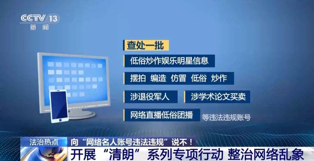 今年以来,中央网信办持续开展“清朗”系列专项行动,对短视频领域恶意营销乱象、AI技术滥用、整治涉企网络“黑嘴”“自媒体”发布不实信息、恶意挑动负面情绪问题、网络直播打赏乱象等网络乱象进行了专项整治。
