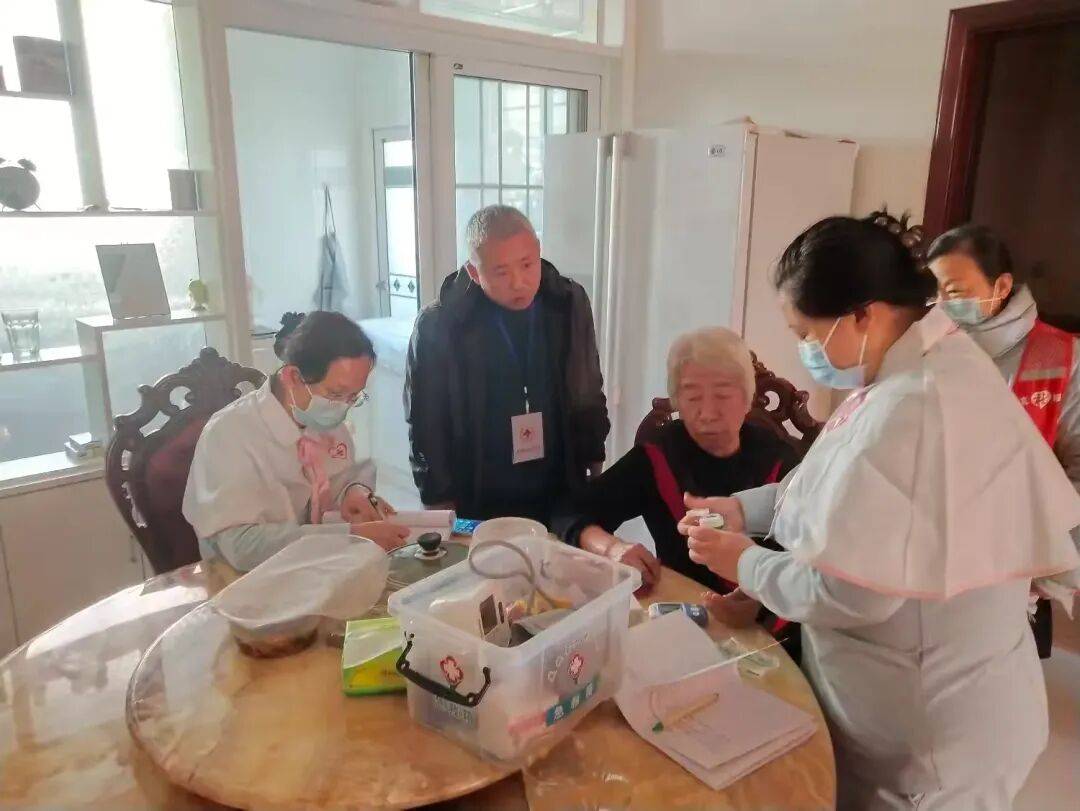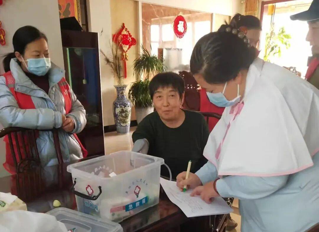 志愿者们深入居民家中,为老人提供多项健康服务。他们仔细为老人测量血糖、血压,进行基础健康检查,同时记录老人的身体状况和医疗需求。这些服务帮助老人及时了解自身健康情况,为后续的健康管理提供基础。