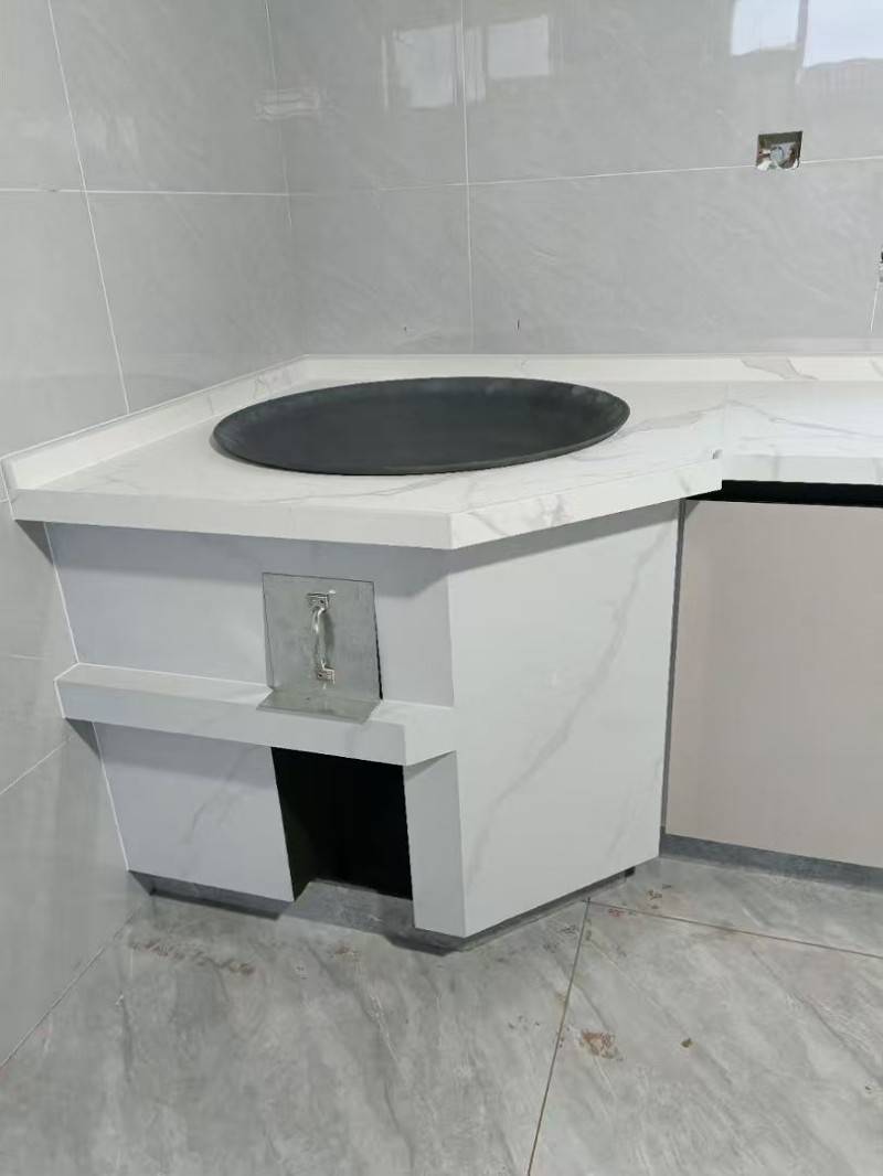 无烟柴火灶整体采用红砖砌筑并精心浇灌而成,结构坚固,经久耐用。台面以钢筋与混凝土一体浇筑,表面平整,抗冲击性强,耐砍耐剁。边缘采用45°无缝倒角工艺,线条流畅,触感柔和,外观简洁大方。燃烧过程中,烟雾通过高效烟道系统被迅速抽排至室外,实现室内零油烟滞留,确保家中空气清新。柜体部分选用优质瓷砖打造,具备优异的防水、防潮与防霉性能。这款柴火灶既保留了传统柴火灶的烹饪风味,又融入了现代人性化设计。