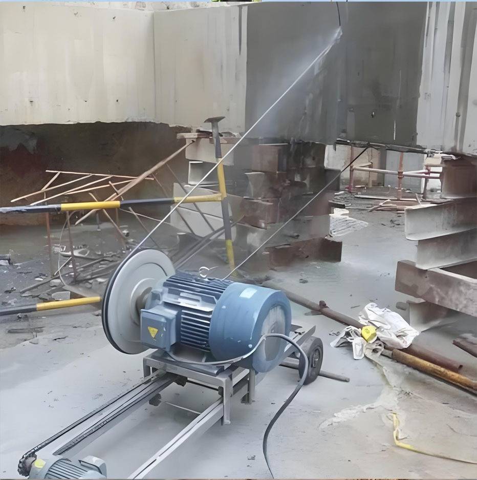 首先,现场勘察需要确定混凝土的强度、钢筋分布以及周边环境条件,以选择合适的绳索类型和切割参数。例如,高强度混凝土可能需要更耐磨的金刚石串珠,而钢筋较多的区域需调整切割速度以避免绳索损坏。