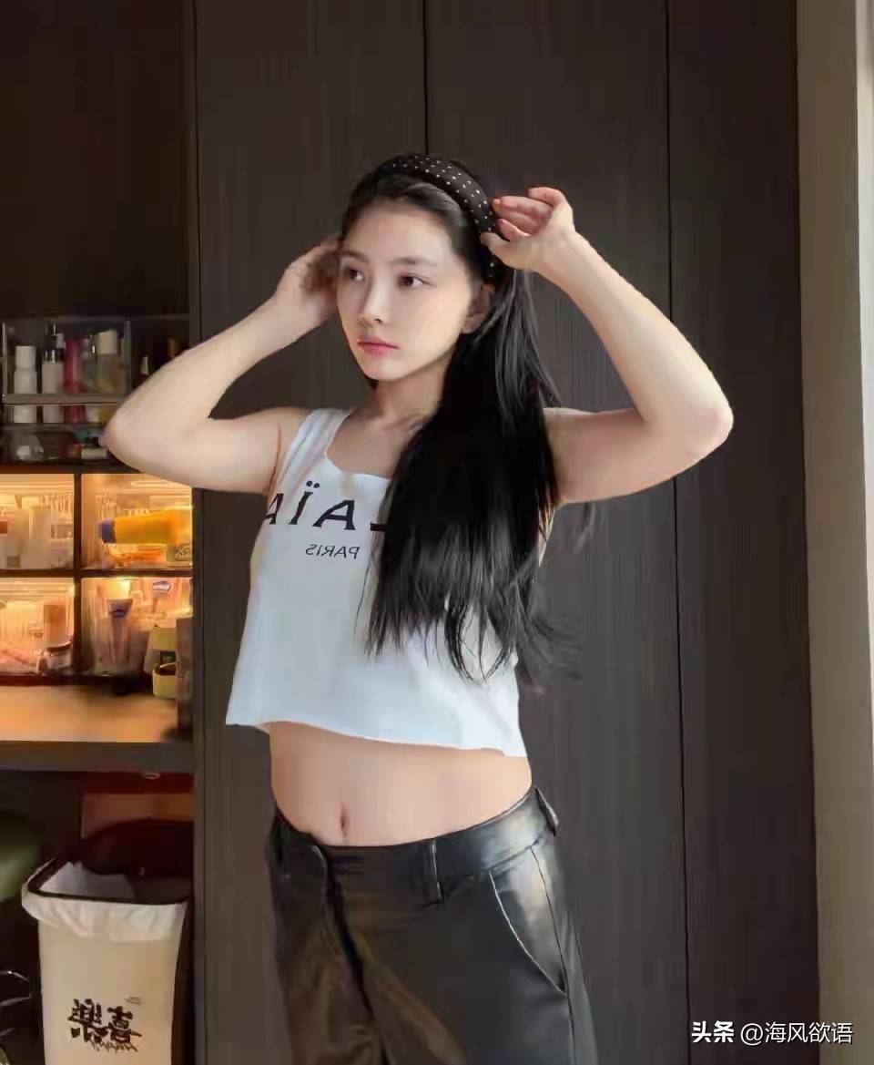 她穿了件白色露腰背心,侧身时肚子上的小肉肉清晰可见,胳膊也比以前粗了一圈,但她完全不避讳,还特意多角度展示身材,这份坦然真让人喜欢。