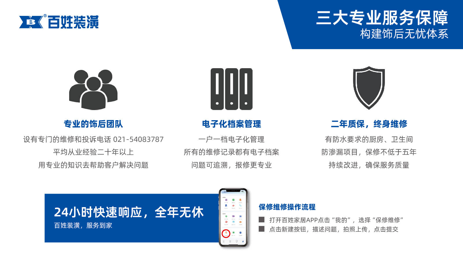上海百姓装潢是1996年由上海建材集团投资组建的国企正规军,现隶属上海地产集团。公司以为民办实事,让民得实惠为企业宗旨,以追求百姓第一为企业精神,以百姓装潢,服务到家为经营理念。在近三十年的发展历程中,不断创新服务内涵、提升服务能级,已为数十万市民提供了家装服务。公司以个性化整装为定位,率先通过IS09001、IS014001、IS045001认证,形成了规范服务体系。应用互联网技术开发了智慧装饰,运用VR、BIM设计、工地直播、百姓家居APP等为客户提供一站式服务;应用区块链技术研发了智链惠家,提供一体化的配套服务;研制了智能运营和数字设计师爱佳家,打造数智装饰新模式。相信选择百姓装潢,你一定能够拥有一个满意的家。