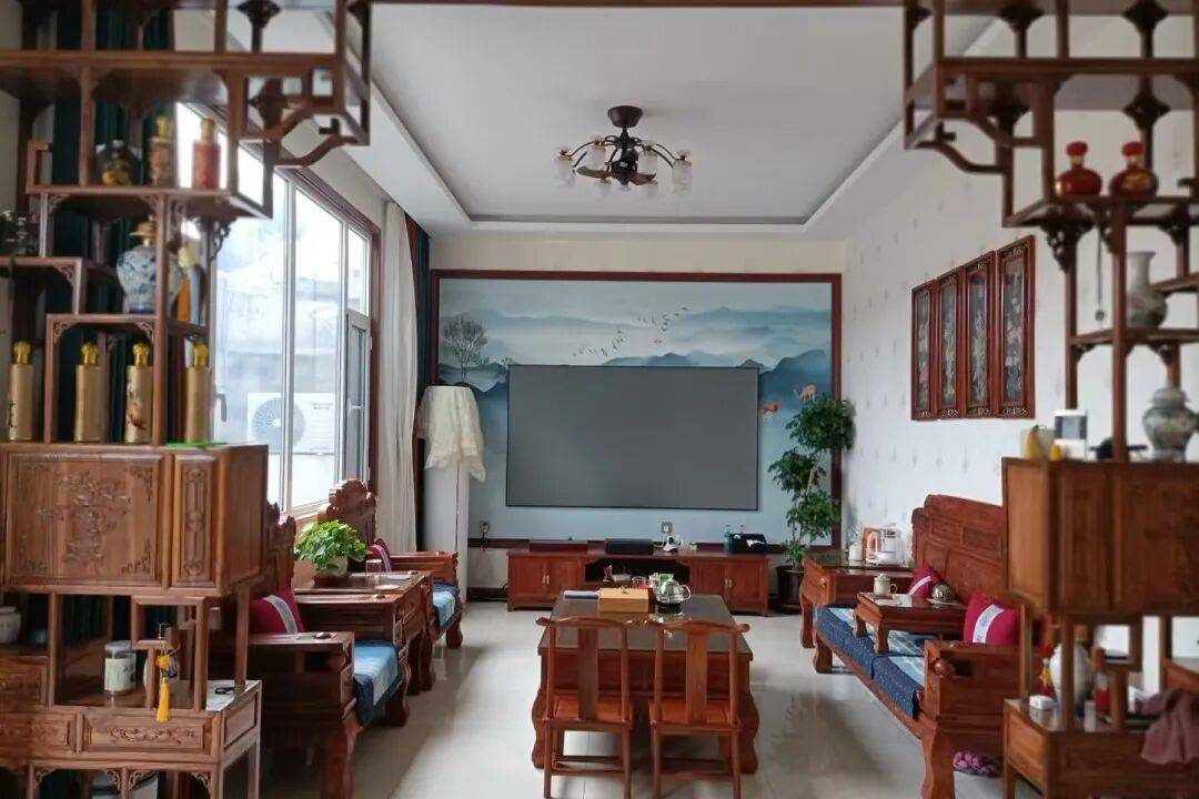 室内布置清新雅致,家具井然、窗明几净,绿植点缀更添生机。每一处细节都体现出主人良好的生活习惯与对品质生活的追求,营造出安逸宁静的家庭氛围,生动诠释了“室洁、院净、人和、家美”的庭院理念。