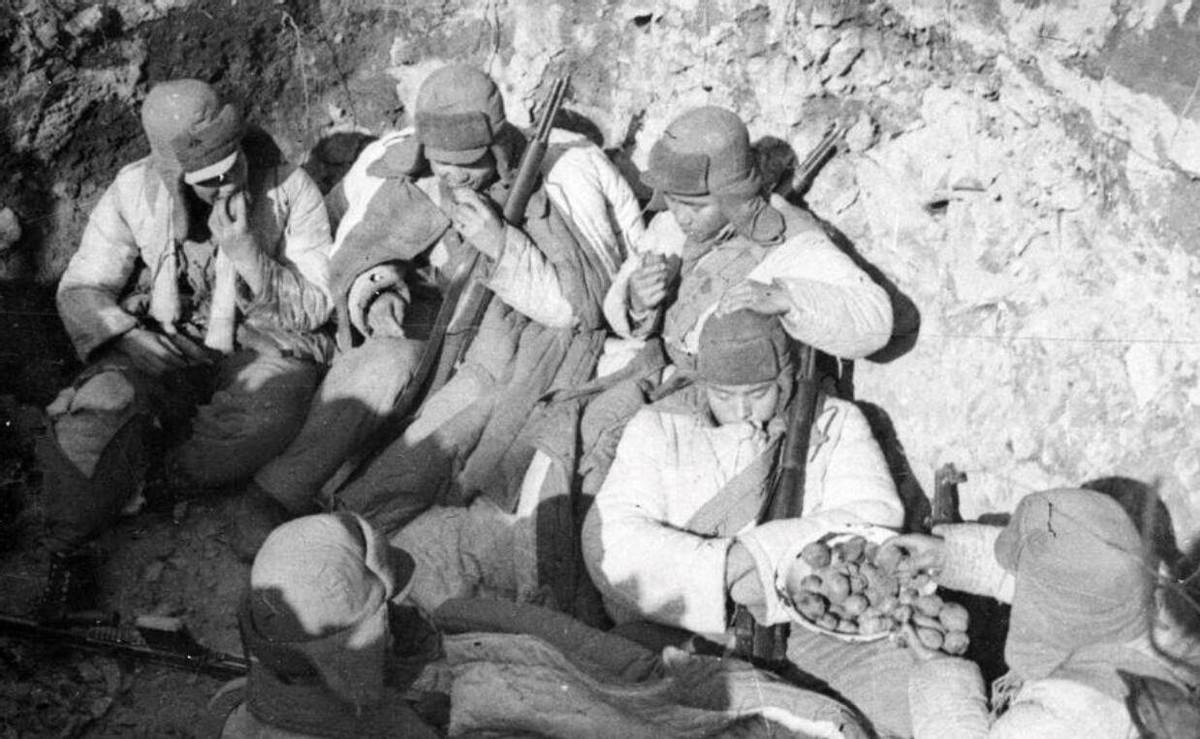 吃什么?石头!你没有听错,战士们吃的真的是石头。干粮袋已经空了,连一点干玉米粒也快没有了。战士梁仁江在这时捡起了一块光滑的石头,含在嘴里,咕噜咕噜地转来转去,借着口中的石头稍微打湿,能让饥饿和口渴稍微忍耐些。就在战士们饥寒交迫之时,朝鲜当地的群众伸出了援手。那些原本因战事躲藏在家中的百姓,得知志愿军急需粮食时,纷纷主动伸出援手。有些家境本就贫困的人,仍然咬牙杀了唯一能用来耕地的牛;有人把家中仅剩的粮食煮成饭,送到战士们手中。