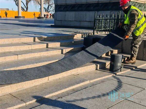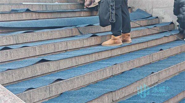清晨,尽管气温低迷,施工人员却已穿戴整齐抵达现场,有条不紊地开展作业。此次推出的 “暖心四件套”有防滑地毯、防滑地垫、扶手保暖套及除雪擦,有针对性解决了冬季地下通道易滑、扶手冰凉等问题。
