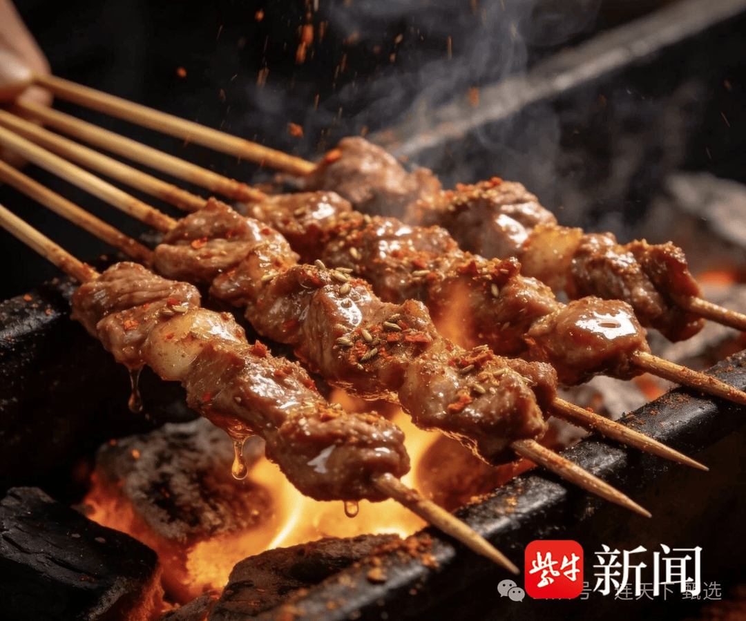 新疆烤羊肉串:空运的新疆牛羊肉,现切现串现烤。油脂在炭火上滋滋作响,撒上灵魂孜然与辣椒面,一口下去肉汁迸发,香气四溢!