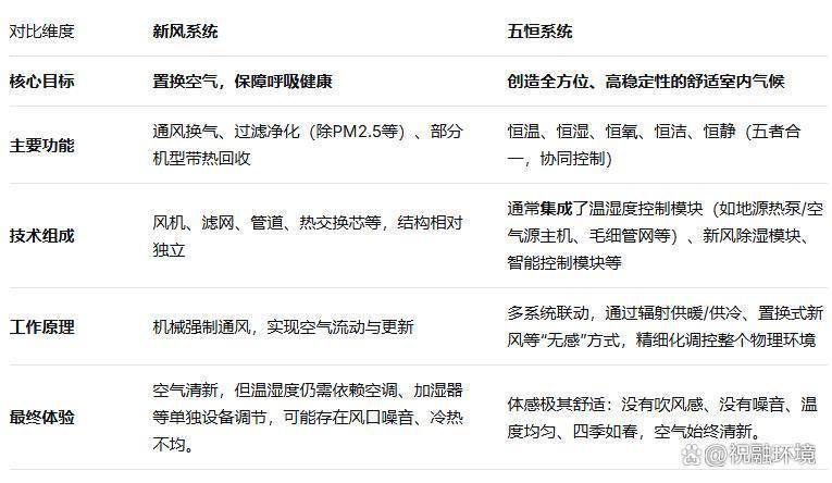 两者的根本区别在于:新风系统是功能单一且至关重要的“组件”,而五恒系统是集成了包括新风在内的多种组件的“平台”或“终极目标”。
