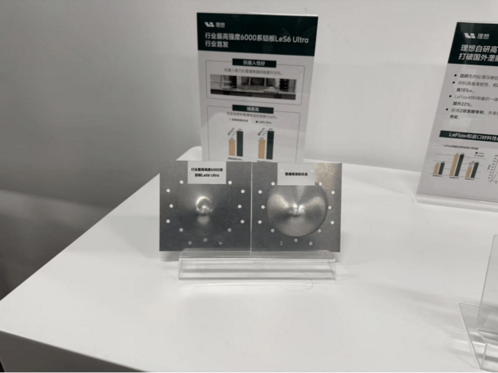 最终,双方决定共同把这条“没人走过的路”走到底。通过多轮验证与配方重构,理想汽车与诺贝丽斯联合开发出了行业最高强度的6000系铝合金——LeS6 Ultra。它的屈服强度达到传统铝合金的3倍,是特斯拉使用的高强铝合金的1.66倍。落到实车层面,在电池底护板这一关键位置,在相同结构与等效冲击下,LeS6 Ultra的变形量比行业主流高强铝减少了30%,抗穿刺能力明显提升,为电池提供了更极限的保护。而这背后,是理想汽车主动承担的高达70%的成本增加。