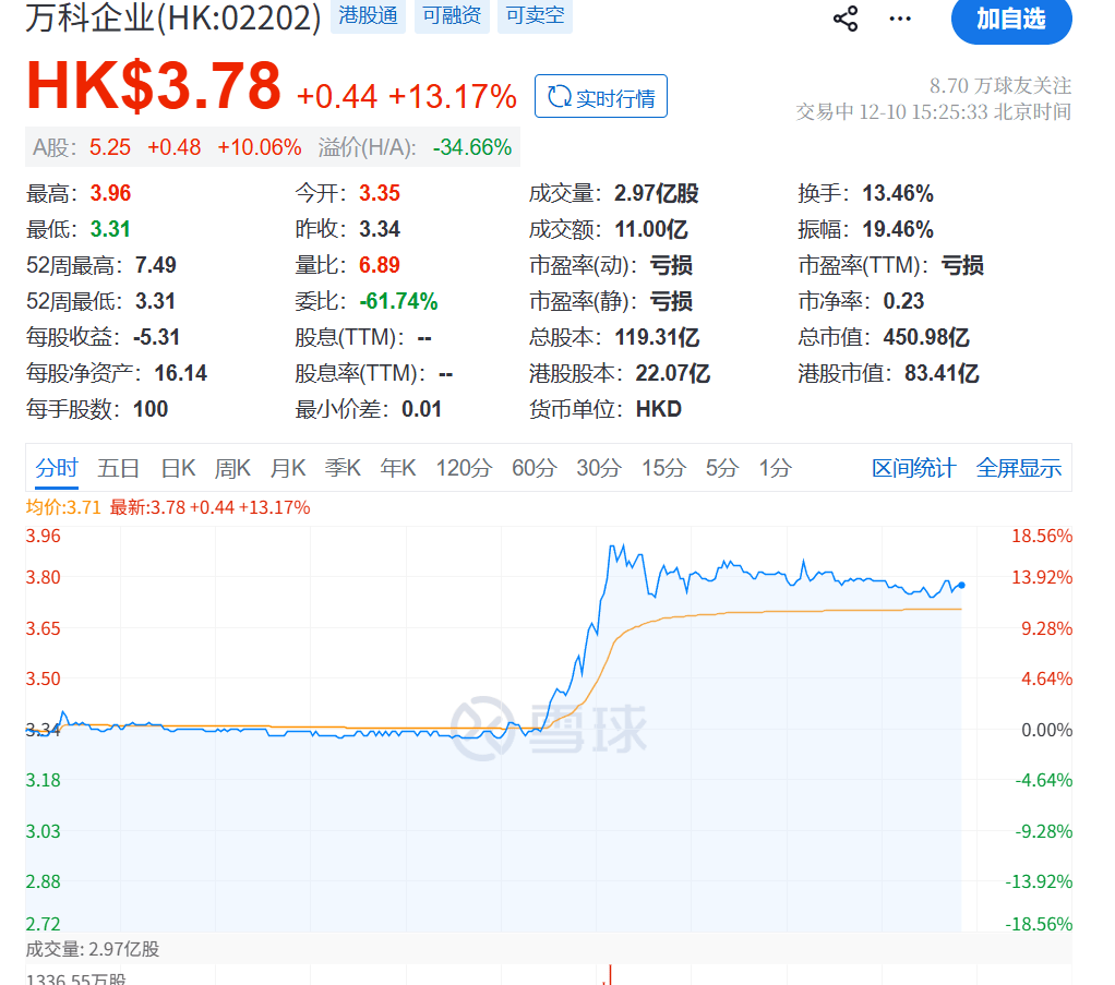 此前,万科的债务问题曾扰动市场情绪,另外,万科于周三上午与债券持有人举行线上会议,就一笔将于12月15日到期、规模为20亿元人民币的境内债券展期方案进行讨论。