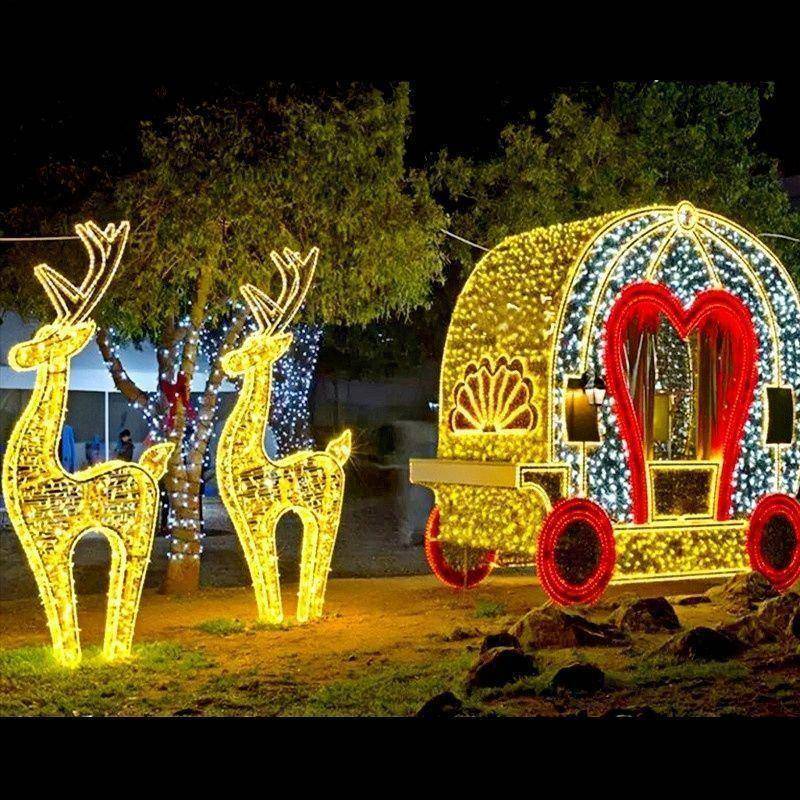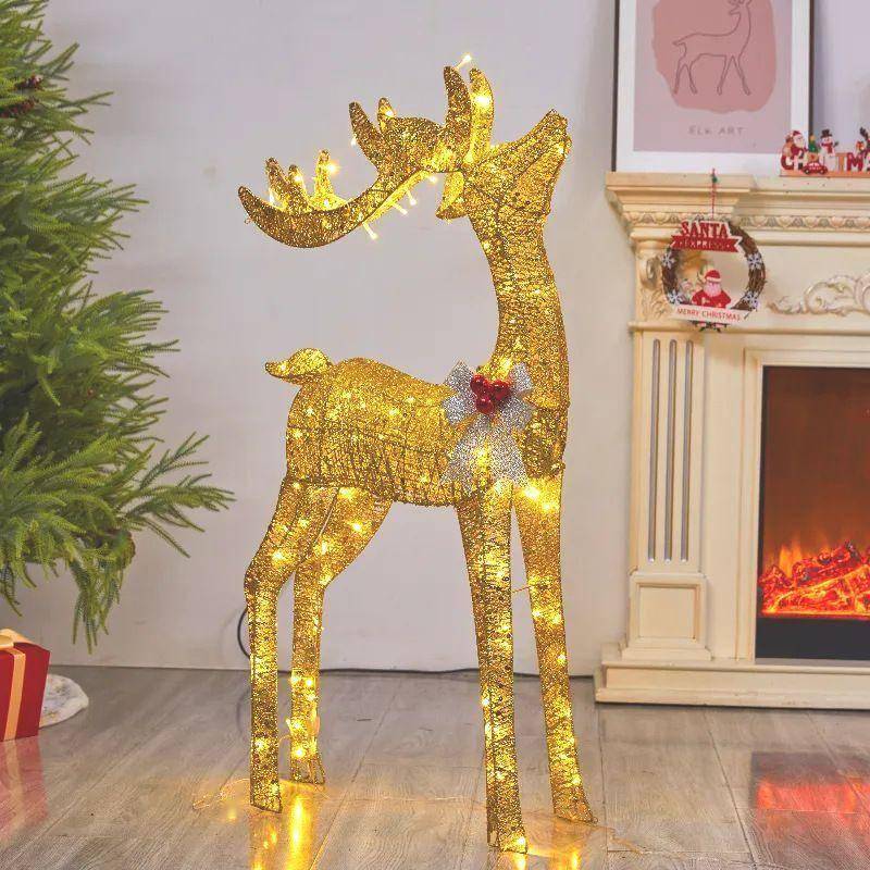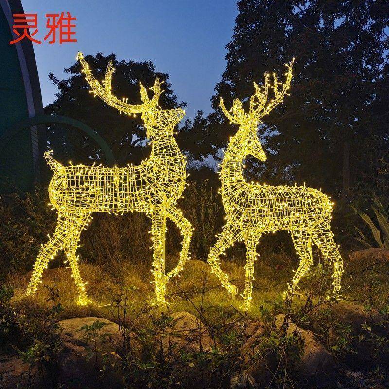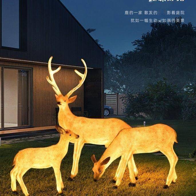 层次搭配法:将不同高度(如0.5米、1.2米、2米)的鹿灯组合摆放,创造立体视觉效果