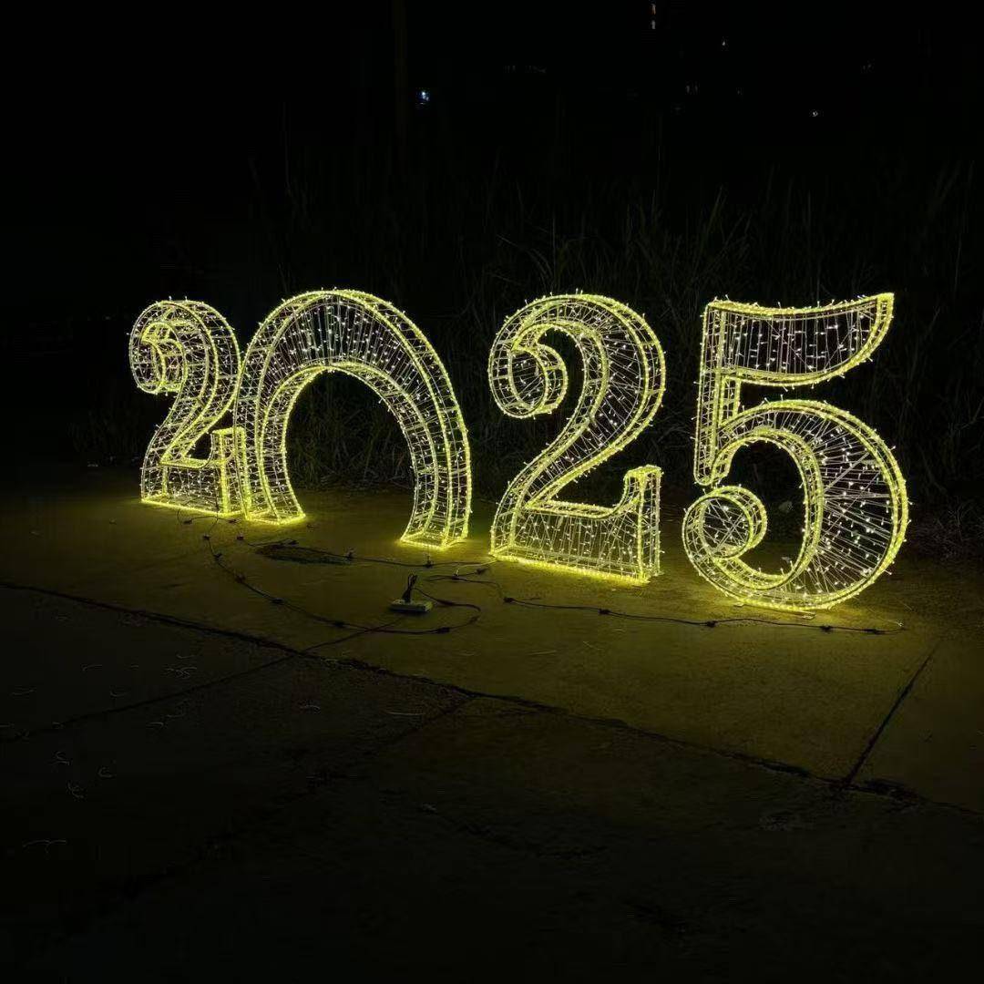 这款2025户外造型春节灯专门为农历新年设计,将传统生肖元素与现代灯光艺术完美结合。灵动的鹿形轮廓点缀着中国结、铜钱等吉祥图案,红色与金色的灯光交替闪烁,洋溢着浓浓的节日喜庆。