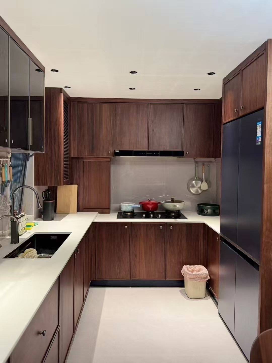 合作案例多三木家具拥有丰富的合作案例,为邯郸、山西吕梁、廊坊胜芳等地的家庭打造了专属的中式空间。在这些案例中,实木橱柜定制都展现出了高品质和个性化。比如在邯郸150㎡宋氏美学定制案例中,客厅、餐厅等区域的实木橱柜选用北方老榆木与胡桃木,天然纹理搭配环保漆工艺,既健康又有质感。传承榫卯结构,经德国精密设备加工,线条简约利落,尽显宋式瘦、挺、雅特质,设计还原度高达96%,充分满足了客户对风格和实用的双重需求。