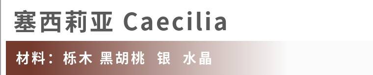 “塞西莉亚”(Caecilia )在拉丁语中有尊贵与珍贵之意,以硬朗的栎木与黑胡桃为基底,搭配珠宝级镶嵌,尽显内敛与从容。
