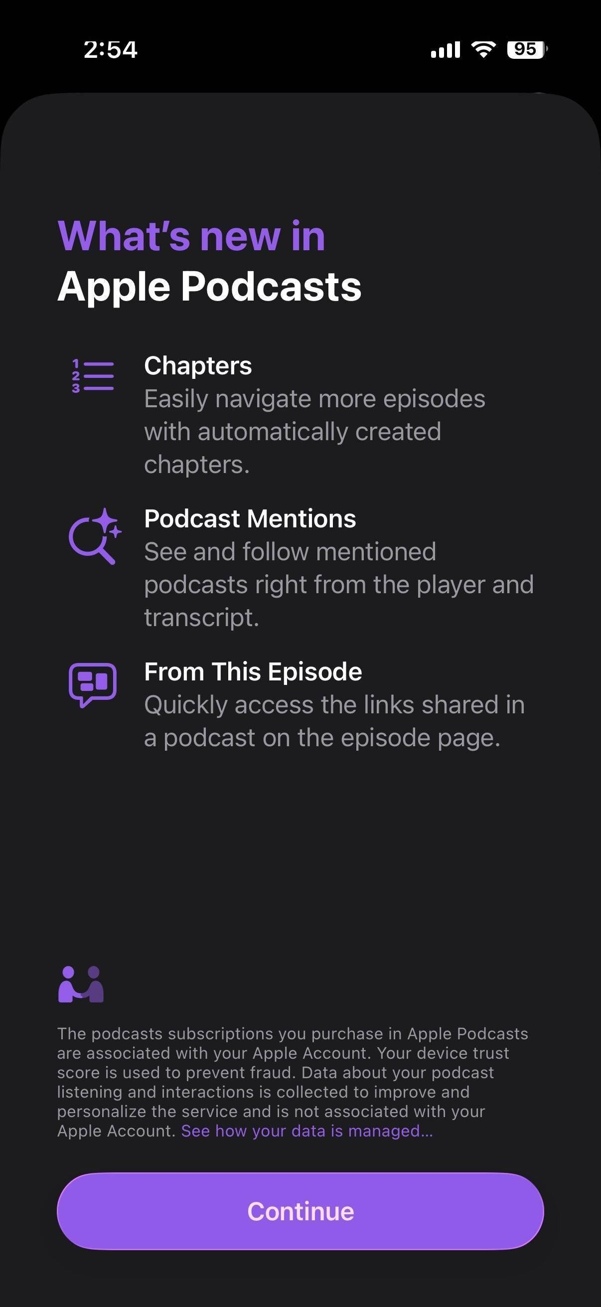 IT之家援引博文介绍,苹果新增了“播客提及”(Podcast Mentions)功能。当一个节目中提到另一个播客时,新版应用将在播放器界面和文本记录(Tran)中自动生成一个指向被提及播客的链接。听众无需再手动搜索或复制节目名称,即可一键查看并关注感兴趣的新播客。