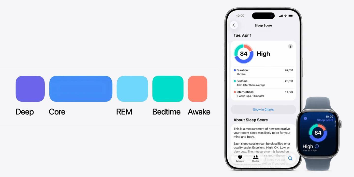 “睡眠分数”(Sleep Score)是 Apple Watch 上的一项健康功能,它通过分析你的睡眠时长、规律性和中断情况,给你一个 0 到 100 的分数,用来量化你前一晚的睡眠恢复效果。分数越高,代表睡眠质量可能越好。