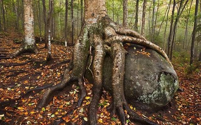 为了在这种地方活下去,铁桦树进化出了一套狠招,它的根能往地下扎五米深,织成一张密网,连岩石缝里的一点矿物质都不放过。