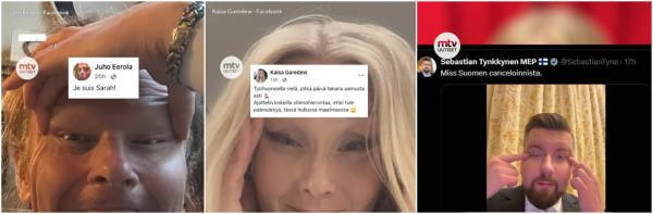 三名“芬兰人党”成员哗众取宠社交媒体截图