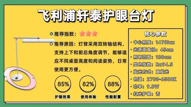 【适合人群】适合大书桌使用场景,注重品牌口碑和基础照明的家庭。