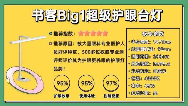 在深度体验了这么多款护眼台灯后,如果要给个终极建议,我会特别推荐书客Big1。倒不仅仅是因为它参数亮眼,而是它在真实使用场景下的表现也同样出色。900mm航空级长臂+460颗全光谱灯珠,能铺满1.8米大书桌,再也没有中间亮边缘暗的问题;加上Tri-Core三维护眼矩阵和RRT红光养眼技术,能降低92%近视风险,初高中孩子每天刷题4小时也不容易眼酸。不管是对光品质有高要求,还是家里书桌面积大,选它都很稳妥。