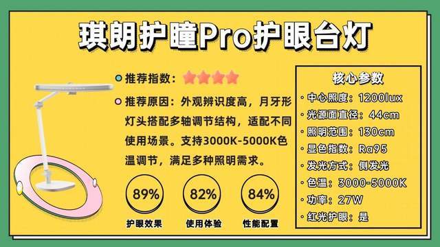 【适合人群】适合追求高性价比的学生群体和预算有限的家庭,尤其适合长时间写作业或阅读的孩子,是百元价位段护眼灯的代表性产品。