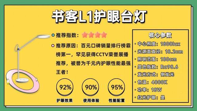 预算有限的伙伴们,直接冲书客L1就行。它把书客的医学护眼基因下放到百元价位,还入选了品牌强国工程,完全不是同价位伪护眼灯能比的。