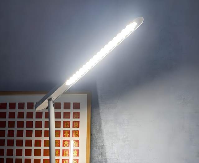 【护眼效果】采用50厘米长条灯头直射式发光,光照覆盖范围可达1.2米,能满足多人共用或大桌面基础照明需求,光线均匀度基本符合阅读、书写标准;通过基础防蓝光处理,可规避明显的蓝光刺激。但直射光特性导致灯头角度调节不当时有刺眼风险,而且未搭载红光护眼技术,长时间使用易引发视觉疲劳,护眼表现偏基础。