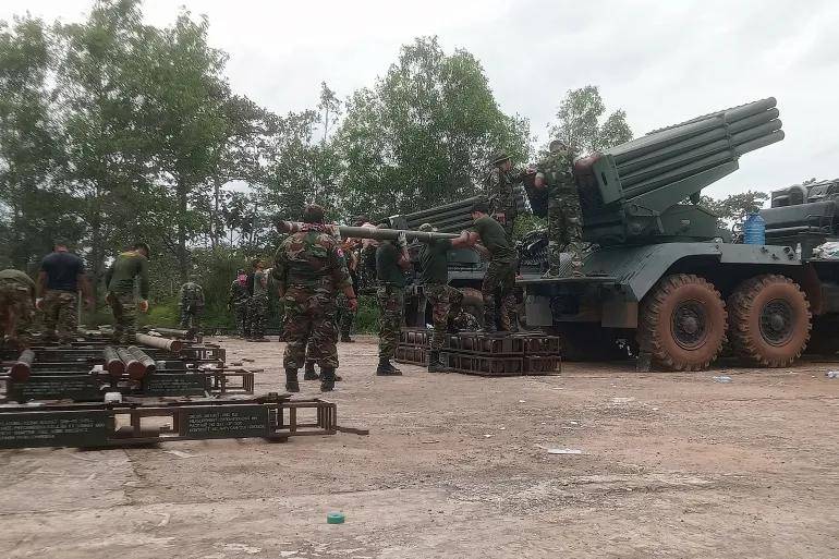 柬埔寨方面公开的,柬埔寨军队发射03式远程火箭炮,轰炸泰国军队边境哨所的画面