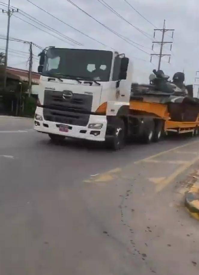 柬埔寨炮弹还挺多,2天打5000发火箭弹,这种火力密度,弹药消耗,柬埔寨有多少火箭弹库存?这么打能打多久?柬埔寨军队也深知,靠炮弹与泰国军队对轰,确实不是长久之计,所以柬埔寨军队也从后方调来了,仅有的装甲力量:12月9日晚间,柬埔寨军方开始将自己的T-55坦克、59坦克,部署在与泰国沙缴府接壤的班迭棉吉省前线地区,准备和泰国陆军装甲部队的VT-4、T-84、“魟”坦克对打。