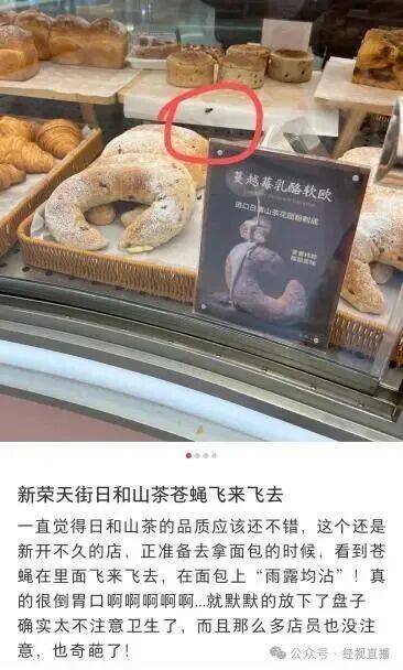近日,有网友发文表示,在日和山茶・日式烘焙(武汉新荣天街店)的糕点展示柜内,看到苍蝇飞舞并接触到面包。网友调侃,这是“雨露均沾”,很倒人胃口。记者联系涉事门店, 工作人员致歉,并表示已在当天处理了相关产品。