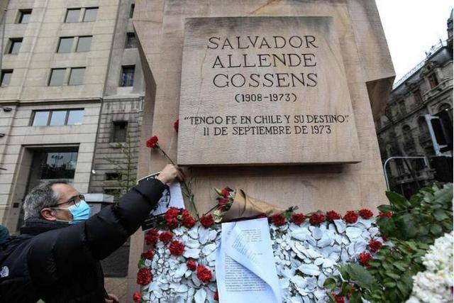 在智利皮诺切特政变中牺牲的智利时任总统阿连德纪念雕像。