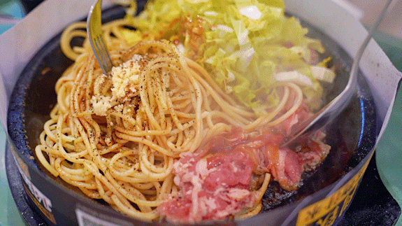 我们还尝了一份【日式炒面 53元】 ,有乌冬面和意面可选,不过我们去的那天只有意面了,但炒熟了吃起来还是很不错的。先撒上料汁,再均匀搅拌,会稍微带点酸甜口。