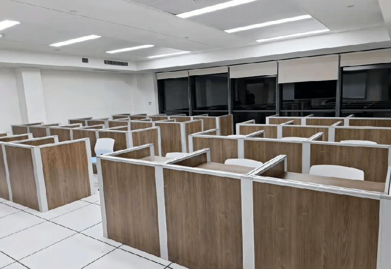 智能卡位升降屏风不仅具备基本的座椅和桌面功能,还通过升降屏风的设计,实现了空间的灵活分隔。在学校的教室中,它可以方便地将教室划分为不同的小组讨论区域,满足分组研讨的需求;在会议室中,也能根据会议的规模和形式进行灵活调整。此外,在一些需要防止作弊的考试场所,升降屏风还能起到很好的隔离作用。