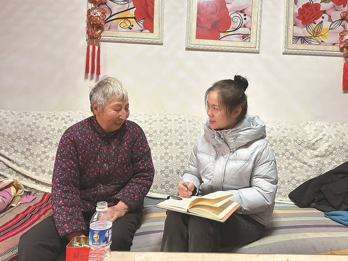 现在,我不再只是记录者,更是村里的参与者。2025年秋收时节,恰逢连绵阴雨,好不容易放晴,我和村干部们一起上街清理枯枝、疏通沟渠,帮村民抢收粮食、搬运晾晒。金黄的玉米在阳光下映照着大家红扑扑的脸颊。寒冬来临,我在村书记的带领下挨家挨户推广新型取暖方式,部分村民不愿改变传统取暖方式,我们便耐心地从个人安全、取暖费用、环境保护等多个角度仔细讲解,充分打消他们的疑虑,收获了全体村民的理解和支持。正是在这服务乡亲的点滴实践中,我与这片土地的联结愈发紧密,也练就了读懂乡情、讲明政策的实践本领。