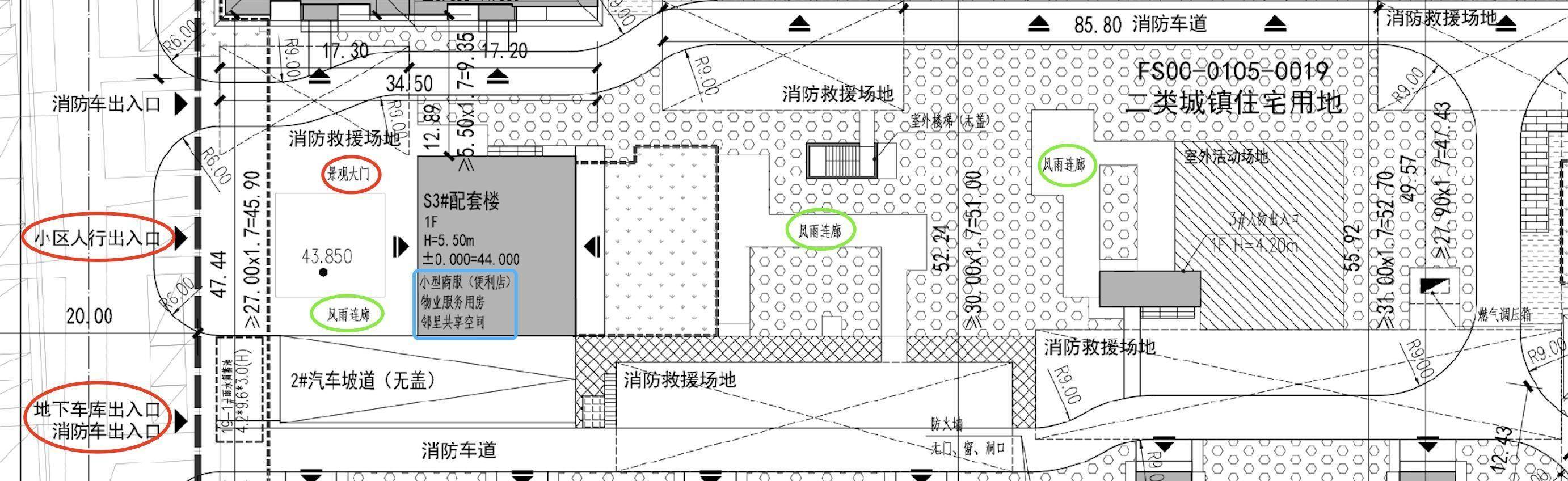 小型商服(便利店)/物业服务用房/邻里共享空间→室外活动场地。